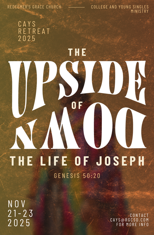 This year’s College and Young Singles retreat, “The Upside of Down,” will be an in-depth study of the life of Joseph. Together, we’ll learn how God’s hand is at work even in the hardest seasons and how to trust His plan when we can’t see the outcome. Join us for a weekend of biblical teaching, genuine fellowship, and encouragement to keep walking faithfully no matter what life brings!