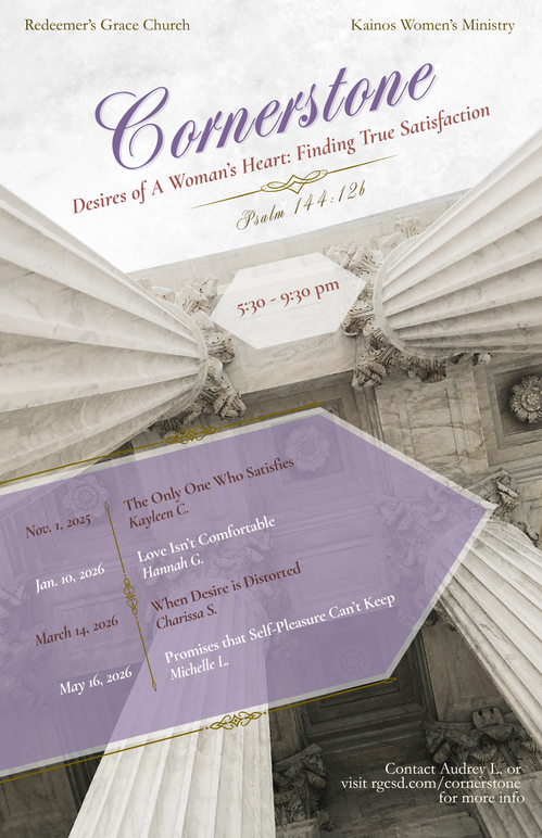 Cornerstone is our Kainos teaching series in which we tackle major issues Christian women face today. This year, we will be addressing the topic of desire. The world around us promises satisfaction, yet offers only empty substitutes. Too often, we chase our desires, forgetting that God alone is our true source of satisfaction. Come to Cornerstone to learn how we can view our desires rightly and find fulfillment in God, who fully satisfies our deepest longings!