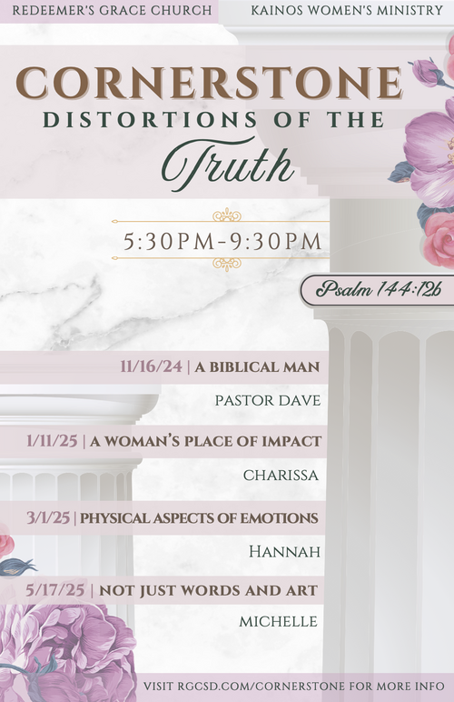 Cornerstone is our Kainos teaching series in which we tackle major issues Christian women face today. This year, we will be addressing the topic of distortions of the truth! There are many ways that the world tries to distort what God’s Word says, and these wrong thinking patterns can influence the church. What are the ways in which the world has distorted truth, and how can we combat this by understanding and applying the truths of God’s Word? Come to Cornerstone to find out what the Bible has to say about distortions of the truth!