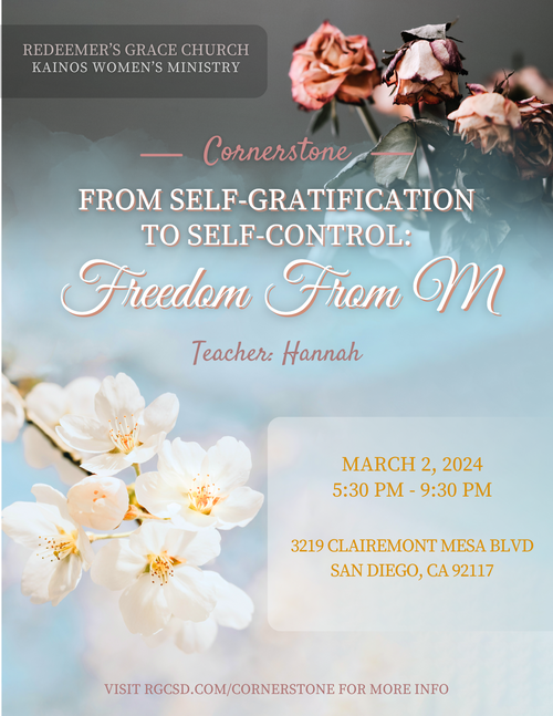 At Cornerstone, we had the privilege of hearing from Hannah on the topic of “From Self-Gratification to Self-Control: Freedom From M.” Hannah began by narrating two contrasting stories. She began with a story in which a king lavished on his queen extensive material wealth and glamor. Yet in reality, it was all fake; her husband was having affairs with other women behind her back. Although the world thought they had an otherworldly romance, she wasn’t truly loved or free, but enslaved to her husband’s wicked debauchery.