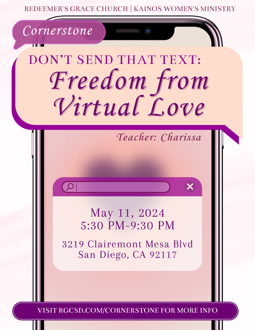 "Charissa’s lesson on “Don't Send that Text: Freedom from Virtual Love” was a super encouraging time of learning how to combat issues such as insecurity and loneliness by turning to God’s love, instead of turning to forms of fake love such as virtual love. I learned that we should have HIGH standards for love, and in times where I may struggle with insecurity or loneliness, to pursue after knowing God, aspects of His love, and how He is personally working in my life! I want to apply this lesson by taking the time to study more about God’s love and what characterizes it so that I can be a woman who practically lives out the truth that I am loved by God, and to be someone who truly loves God with all my heart, soul, and strength!"