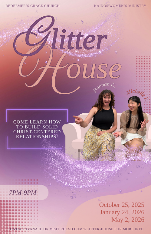 You’re invited to something exclusive, exciting, and EXTRA special — it’s Glitter House! Join us for a one-of-a-kind Q&A panel where our speakers, Hannah and Michelle, talk about themes such as dating, marriage, and friendship. Additionally, YOU are part of the experience by asking your questions! Come ready to hear God’s Word, have a fun time, and to get your questions answered.