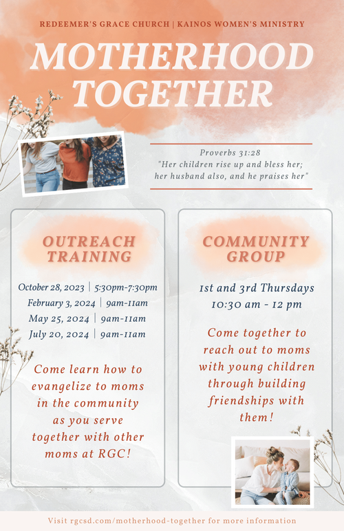 Come learn how to evangelize to moms in the community as you serve together with other moms at RGC!