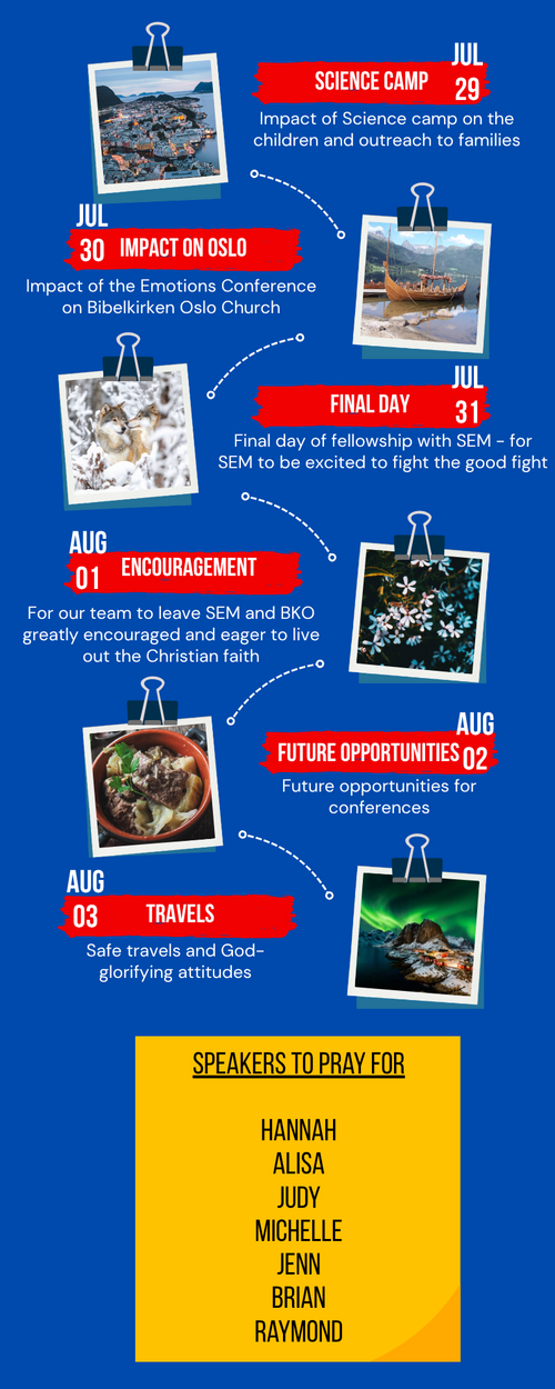 Join us in praying daily for our missions team in Norway!
