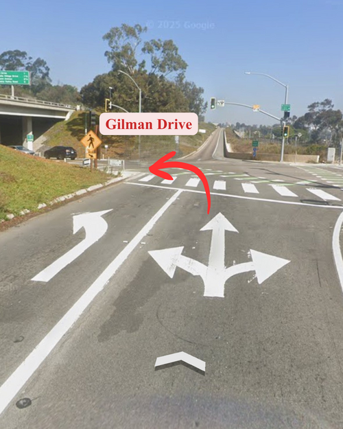 - Take I-5 North, and exit Gilman Drive/La Jolla Colony Dr.