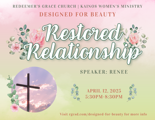 Before we were saved, we were enemies with God. But as Christians, we have the privilege of being His daughters and having a restored relationship with Him! Knowing that our position before the Father is secure, how can our relationship with God be a beautiful one that is marked by His design for our lives? Come learn more at “Restored Relationship” how our righteous standing before God affects our pursuit of beauty.