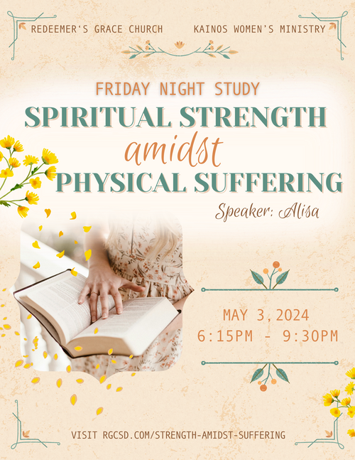 Through the lives of these saints, we see that they gathered spiritual strength because their focus was on God - His authority, His goodness, His headship of the church, and much more! For those who are not enduring physical suffering, Alisa encouraged them to be examples of hope and to grow in their thoughtfulness and compassion for others through sharing truth and offering to help where they can (1 Thessalonians 5:11).