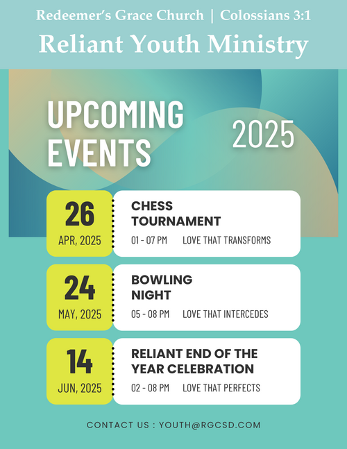 RGC Youth Ministry desires to bring Scripture into the lives of middle and high school students. Every week, we spend time together in God’s Word learning about His truth. Some topics that we have been previously gone through are Anthropology, God’s Incommunicable Attributes, and Old Testament and New Testament survey. Our desire is for our Youth to know God and desire Him wholeheartedly.